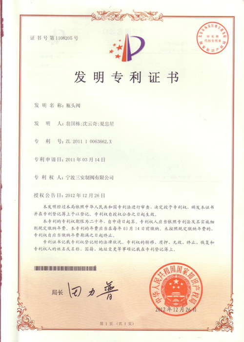 宁波三安制阀有限公司是国家高新技术企业、中国工业气体工业协会理事单位、中国气体协会气体压力设备专业委员会委员、全国气瓶标准化技术委员会附件分委会秘书处单位。